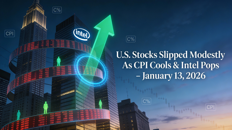 U.S. stocks slipped modestly on Tuesday as Wall Street digested a cooler core inflation print, a heavy dose of bank earnings, and fresh tariff salvos from Washington, leaving the major indexes just a step back from record territory rather than in full…