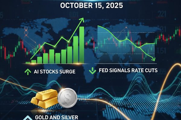 Market Recap October 15, 2025: AI Stocks Surge, Fed Signals Rate Cuts, Gold and Silver Charge Higher -( $AAPL $ADT $AMD $AMRN $AVGO $BVNKF $EPRX $INTC $LLY $MCD $MDB $META $NVO $OMER $ORCL $RIO $SER $TCGL $TDOC TSLA Rise!)