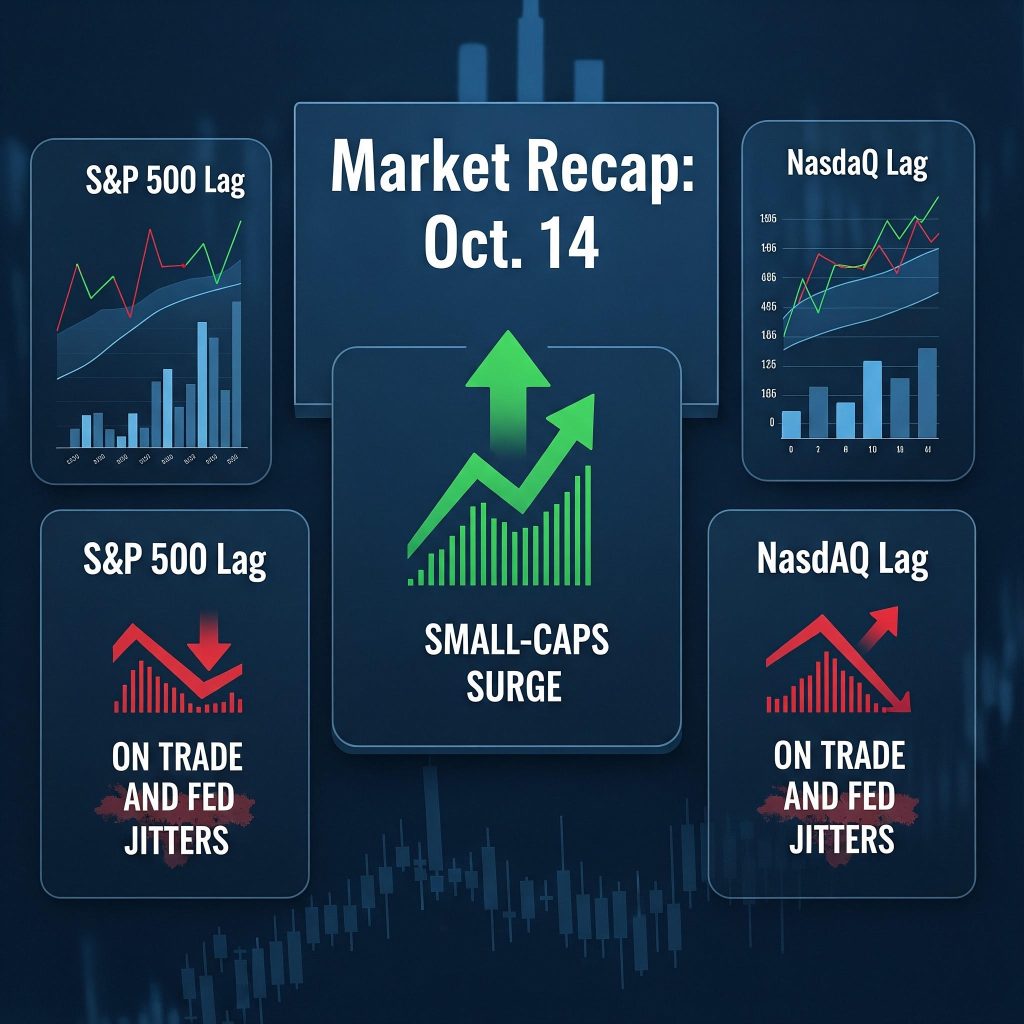 Market Recap Oct. 14: Small‑Caps Surge While S&P 500 and Nasdaq Lag on Trade and Fed Jitters -( $AAPL $ADT $AMD $GOVX $MCD $NOK $OKLO $PLTR $RPGL $SER $TDOC Rise!)