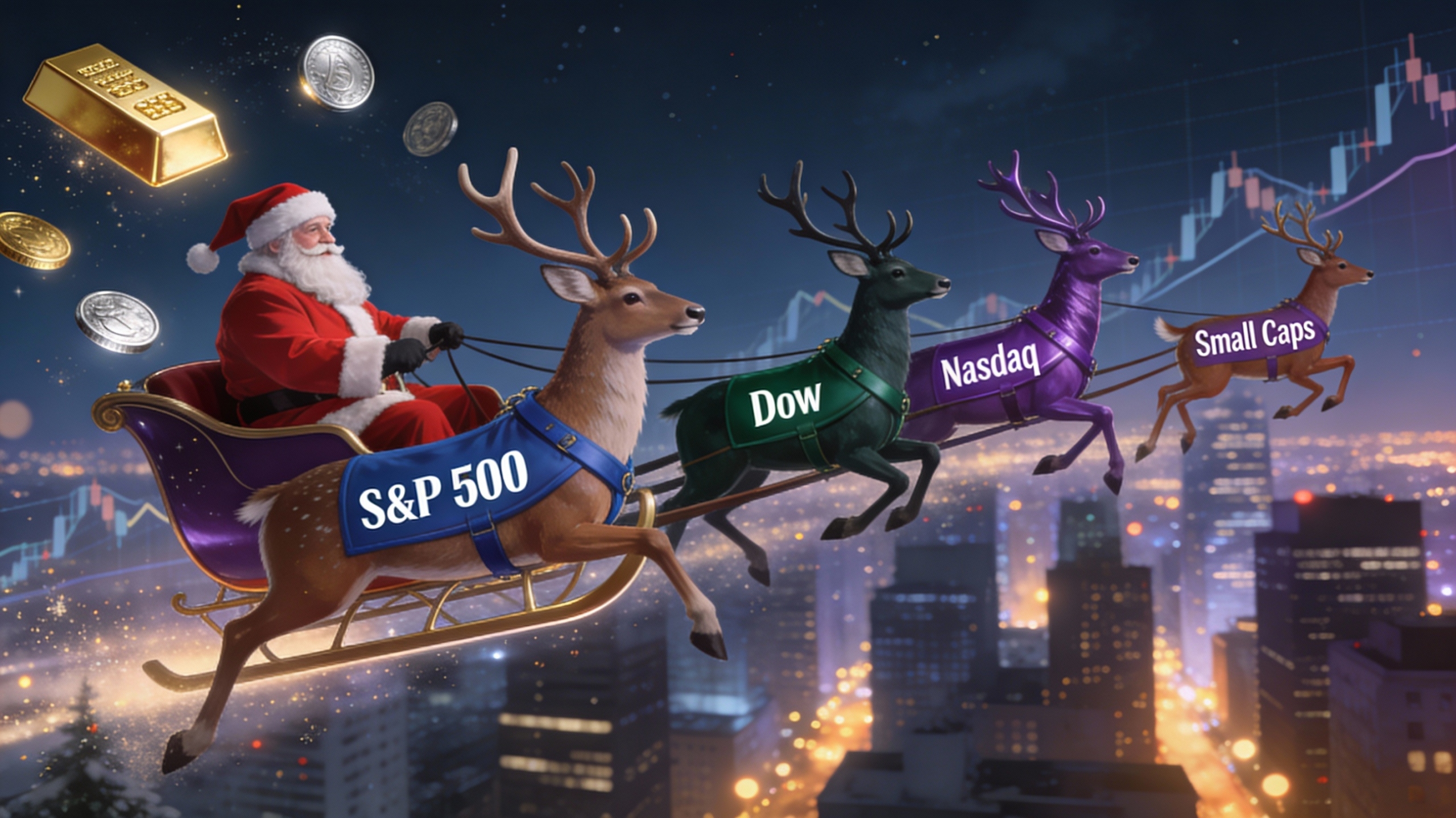 Wall Street opened the final Christmas week of 2025 in a festive mood, with equities drifting higher in to record territory as if trying on a Santa rally for size without quite committing to the full costume, however the smalls seem to be fully committed to a Santa Rally somewhat surging today.