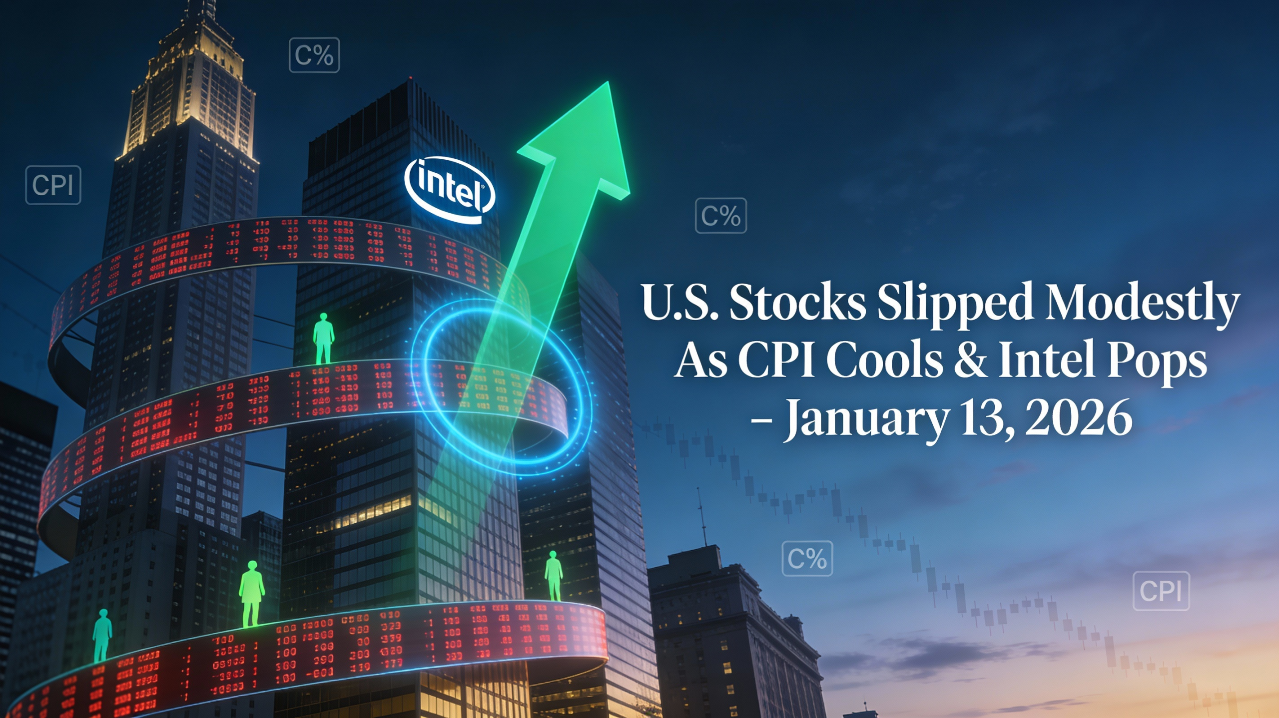 U.S. stocks slipped modestly on Tuesday as Wall Street digested a cooler core inflation print, a heavy dose of bank earnings, and fresh tariff salvos from Washington, leaving the major indexes just a step back from record territory rather than in full retreat. Precious metals held near historic highs and bitcoin hovered around five figures that now look oddly pedestrian next to $4,600 gold, while Treasurys signaled a still-steep but slightly calmer curve as traders looked ahead to this month’s FOMC meeting.